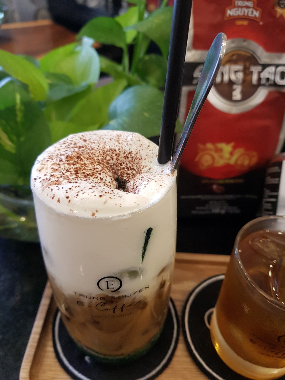 Dòng Coffee THIỀN luôn là thức uống yêu thích của tôi. Tuổi thơ tôi gắn liền những tách coffee nho nhỏ được bà ngoại chiết ra để dành trong ngăn đông tủ lạnh và những ly sâm dứa của cô hàng coffee sát nhà. Kết hợp 2 món thức uống yêu thích thời thơ ấu nay tôi sử dụng chính dòng Sáng Tạo 3 , sữa đặc Brother, một chút kem Rich, sữa tươi thanh trùng hòa chung một ít muối tinh sấy và không thể thiếu si ro Sâm Dứa và thạch Sâm Dứa.... Vì tôi đưa món này vào kinh doanh của quán nên tính thẩm mỹ của ly nước không thể bỏ qua_ Phân tầng 3 lớp theo yêu cầu của khách thích đắng nhiều của coffee hay ngọt mát của sâm dứa hoặc vị béo nhiều của milkfoam sẽ quyết định độ cao của tầng trang trí. Tôi đặt tên cho món này là COFFEE SÂM DỨA. Mong rằng những ký ức tuổi thơ của mình góp phần tạo nên 1 món mới khiến cho khách hàng yêu thích.