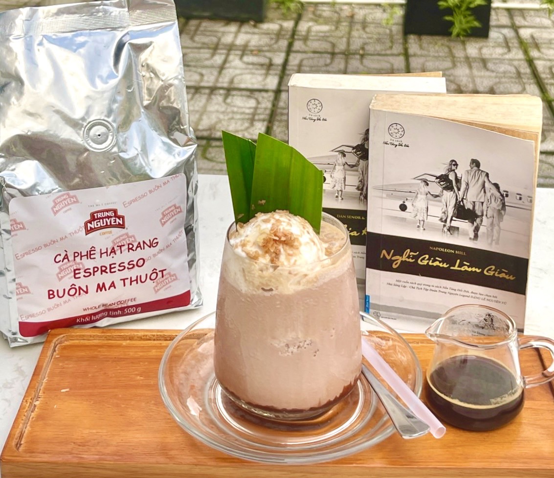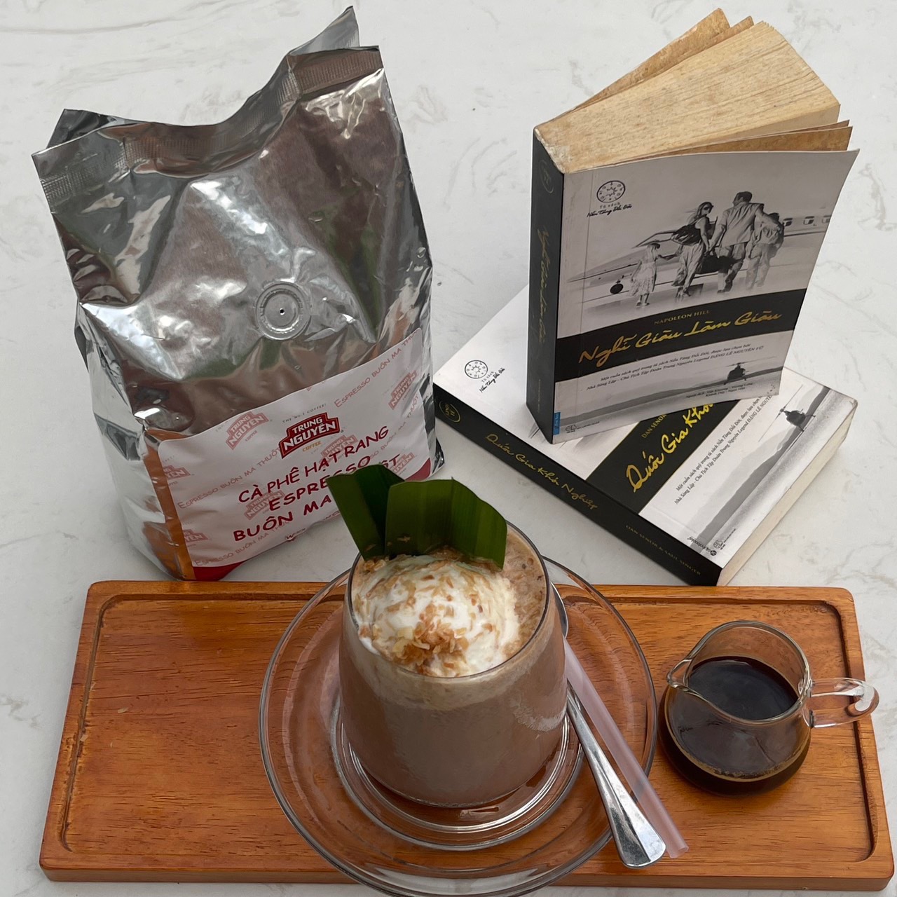 Cà phê socola dừa đá xay, dựa trên nền văn minh cà phê roman được lấy cảm hứng trong lúc tôi đang thử kem dừa cùng với cà phê. sản phẩm là sự kết hợp giữa cà phê chiết xuất espresso Buôn Ma Thuột cùng với kem vị dừa Mingo và thêm sốt socola tạo nên một món với hương vị mới lạ. có vị ngọt từ socola, và Sữa Đặc Brothers, vị đắng từ cà phê espresso, một chút béo của kem dừa thêm một ít bột cacao tạo độ thơm ngon cho ly nước. sự kết hợp hài hòa của các nguyên liệu tạo nên một món đá xay có hương vị cà phê giúp bạn giải khát, tiếp thêm nguồn năng lượng tích cực sau một ngày học tập và làm việc mệt mỏi.