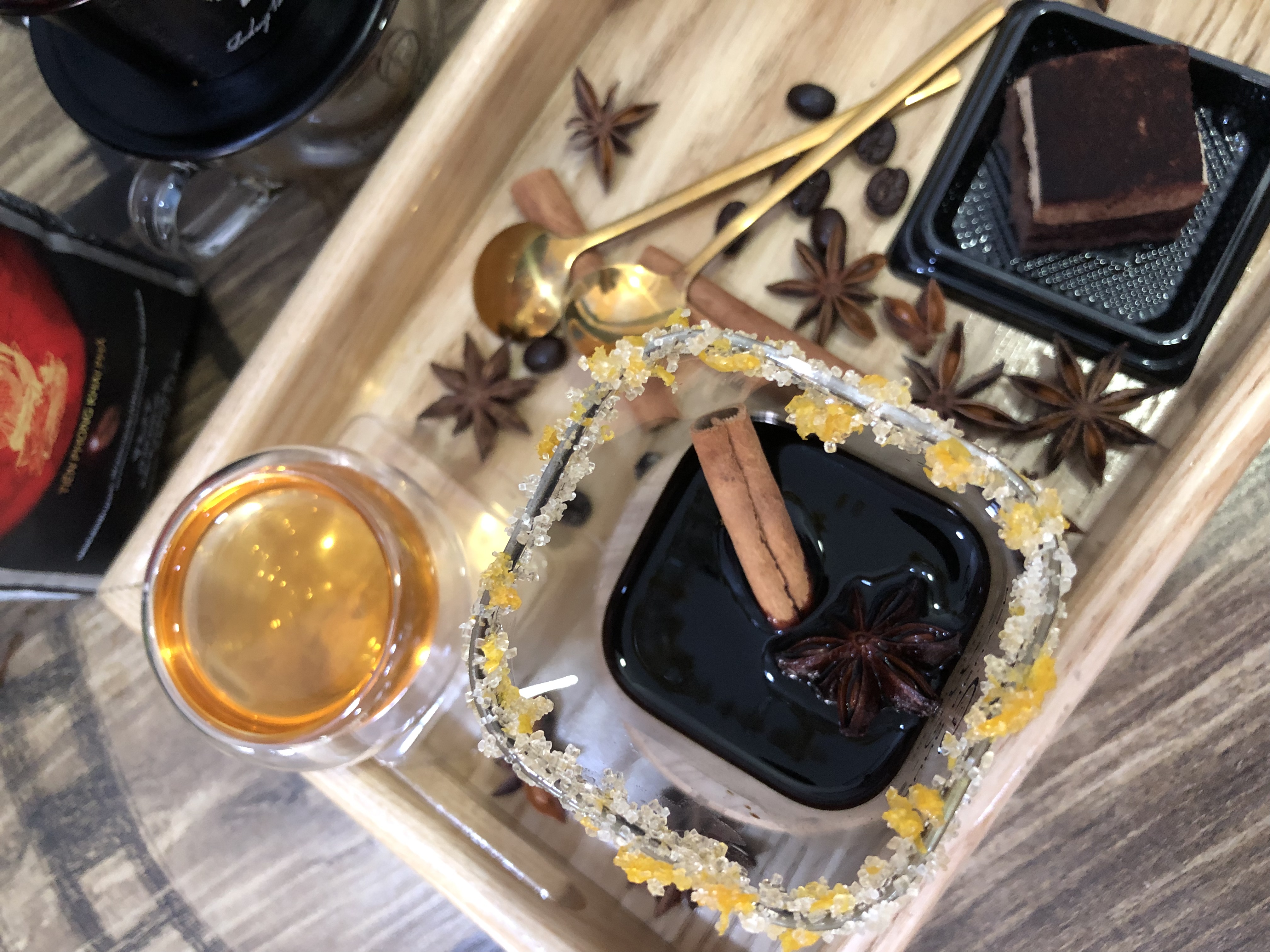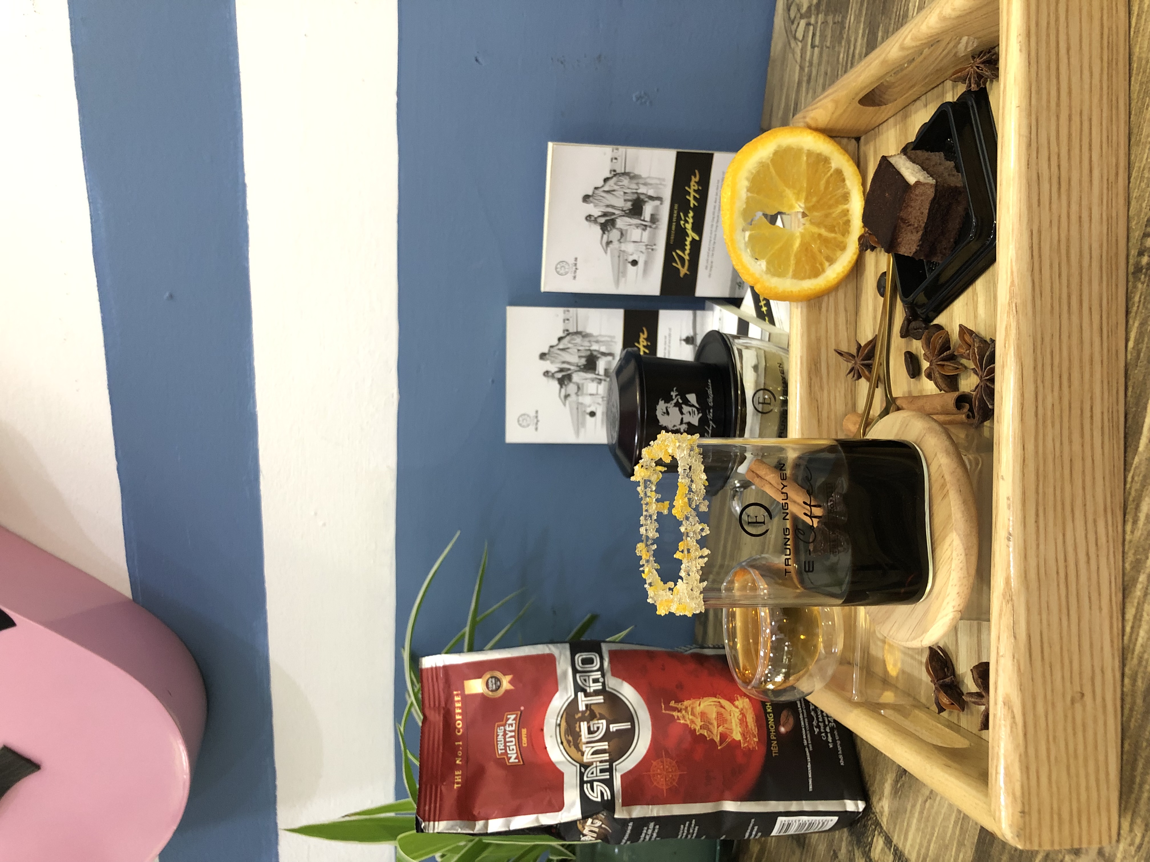 Cà phê quế hồi. Tên món đã nói lên được sự kết hợp hoà quyện giữa các nguyên liệu với nhau. Nơi chốn phồn hoa Đô thị này, cần lắm những giây phút tựa như được về với thiên nhiên núi rừng để lòng được an yên. Khi uống vào điều đầu tiên ta cảm nhận được là vị ngọt dịu của đường và hương thơm nhẹ nhàng từ tinh dầu vỏ cam. Tiếp đến là vị cà phê hơi đắng chát nhẹ được kết hợp cùng quế cây và hoa hồi the mát đầu lưỡi tạo nên sự đậm vị nhưng không tách biệt nhau. Một ngụm đầu đưa ta về thiên nhiên, một ngụm tiếp nữa đưa ta rời khỏi sự xô bồ của chốn hoa lệ. Dường như đưa ta về sự giản dị, mộc mạc, bình yên nơi quê nhà, đưa ta về với sự hoài cổ mà những ly cà phê đầu tiên được ra đời. Ly cà phê này như một cuộc đời, từ dịu ngọt đến cay đắng rồi lại yên bình.