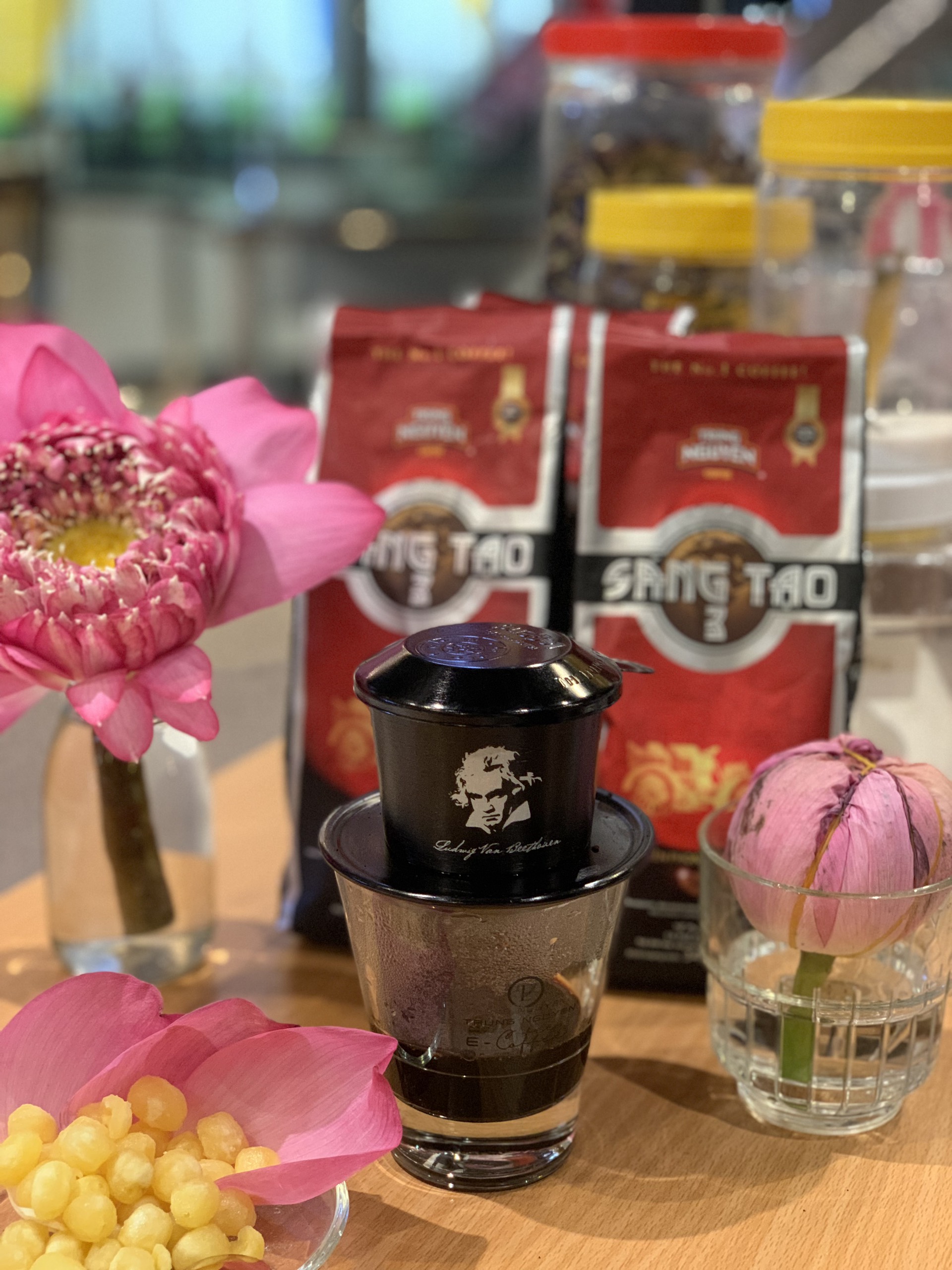 Rồi sau đó thưởng thức cà phê cùng chút đường hoặc sữa với mứt hạt sen trong âm nhạc nhẹ nhàng.